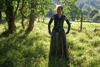 PurityArtist in ResidenceThe wild fey lady of Tumbledown CottageMeet Purity, the Langstonedale artist in residence, half-wild, with a mysterious past, who chooses to live beyond the Hall, in a tumbledown cottage a few miles along the long-abandoned road to the old North Gate, a gate that's been chained shut for more than two hundred years. All through the summer months Purity can be found out and about on the estate, sometimes singing under the willows down by the river, or painting landscapes down by one of the little becks, or up on the rugged moors of Langstonedale Chase. Of course, this wandering about does give plentyful opportunity for taking a dip in the waters. After all, how can you properly get to know a landscape unless you bathe in the wates? And of course, like everyone else on her ladyship's lands, Purity prefers to take the waters fully clothed, none of that bikini business for her. |
