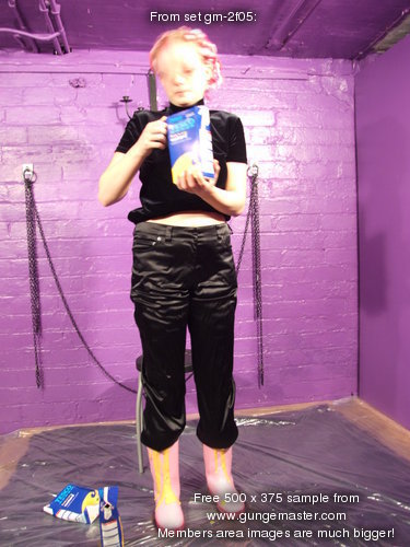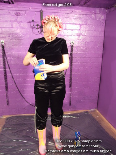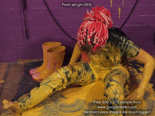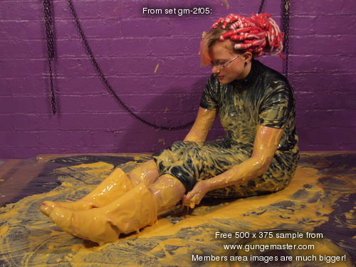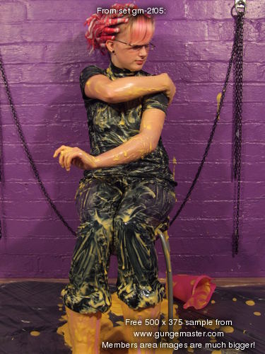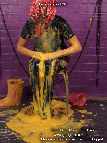 All good things must end, but not till every inch of Miss Pink's lovely outfit had been thoroughly and totally slimed. And then of course there was the long and careful warm water hose-down afterwards, pictures from which can be found in the "Extras" gallery.