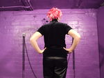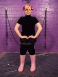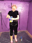 As she'd only just done her pink hair extensions, she decided to keep her head clean, but everything else, from neck to the soles of her lovely pink wellies, was to be saturated as only a Saturation Hall girl knows how.