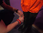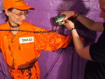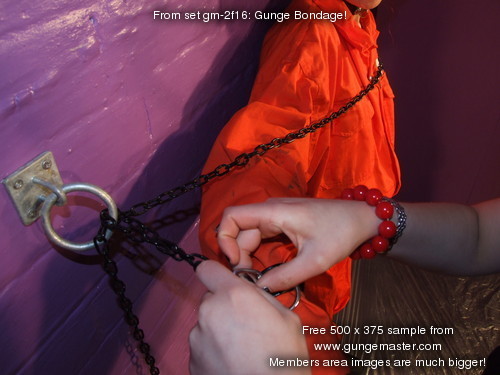 Warder Wendy-Household is relentless, and slowly, slowly, more and more gunge is poured into, and then over, the helpless prisoner, firmly shackled to the unyeilding dungeon walls. Once the uniform suit is well covered, her ladyship is made to watch as her hat is removed, dunked in gunge, and slopped back onto her head. Then more gunge is poured over her head, arms, and over her overalls, until she's been reduced to a saturated sticky mess.