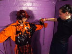 It seems Lasy Jasmine's been a naughty girl, she's been found outside, deliberately getting her clothes mucky. Clearly this indicates a serious threat to society, so for her own good she's been chained up in the dungeon, dressed in an appropriate outfit, where the severely uniformed Ms Wendy-Household will deliver a suitable punishment.
