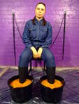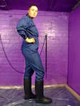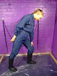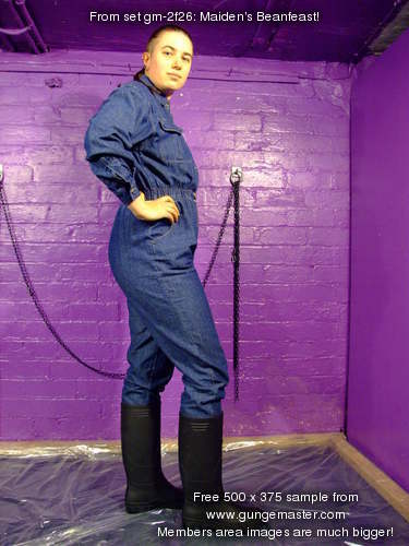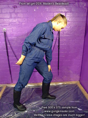 While browsing through Lady Jamsmine's wardrobe, Maiden came across this wonderful 1980s blue denim jumpsuit. Having teamed it with some nice black wellies for that genuine 80s "work woman" look, she knew there was only one way to test it properly, a full-on beaning!