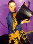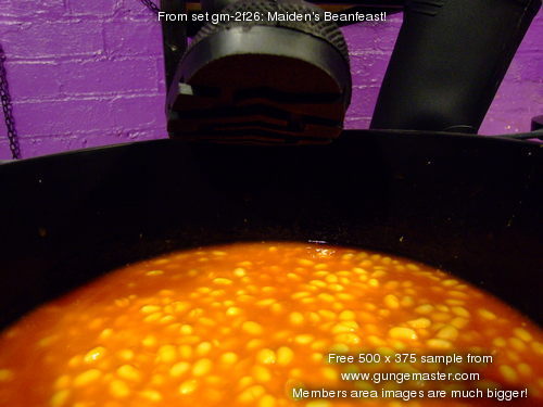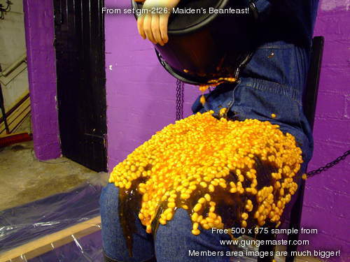 Once both buckets are empty, she lies dowm on the floor and carefully sees to every remaining un-beaned area of her outfit, ensuring every last square inch of fabric is thoroughly drenched in mashed beans and ketchup.