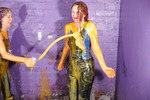 As well as the main messy video you get a high resolution photoset and a separate video of the hosedown, including both girls stripping down to their soaking wet swimsuits towards the end of the scene.