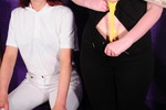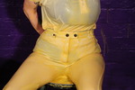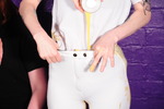 Before they start, they neatly do up the buttons of their polo shirts, it wouldn't do be to be scruffy while getting messy within these ancient walls after all. And then the messings begin! We start in fine style with Miss Abigail, who's suite is Spades, getting the Ace of Spades as her very first card, cue a full can of custard poured into the front of her panties under her jodhpurs. At first nothing shows but before long there's noticable wet yellow staining coming through her oh so smart black jodhpurs.