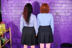 They treat each other's shoes first, then Miss Abigil has her black full-cut knickers well filled front and back before letting her still clean skirt back down over them, and giving Honeysuckle's skirt the treatment.
